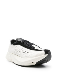 Adios Pro signature-detail leather low-top sneakers Highlights - Grey - Calf leather - Black panel - Lace-up fastening - Signature of yohji yamamoto detail - Sculpted rubber sole Imported Composition Lining: Calf Leather 100% Outer: Calf Leather 100%, Calf Suede 100% Sole: Rubber 100%