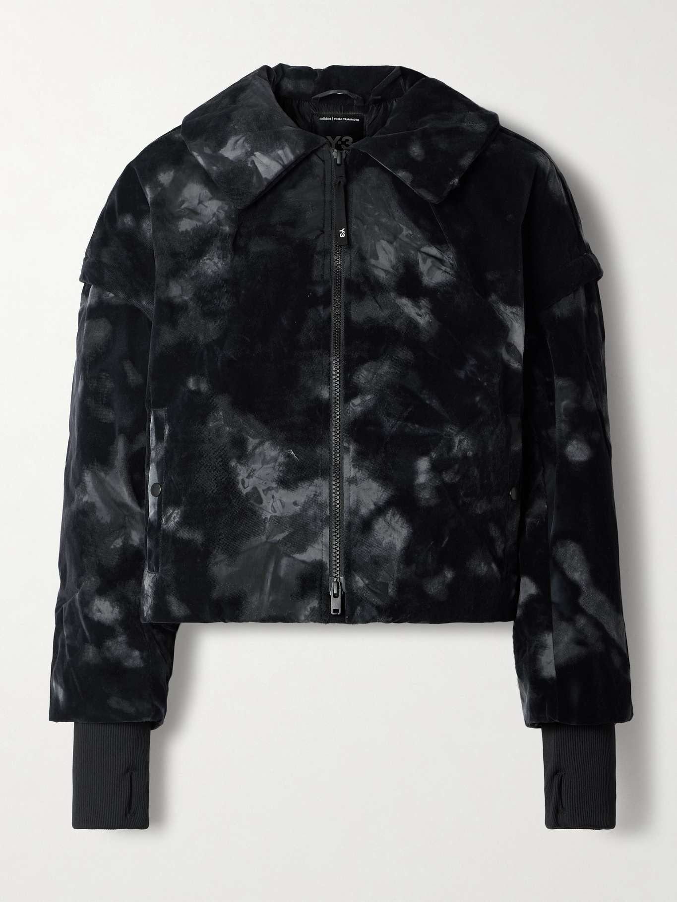 The long-standing collaboration between adidas Originals and Y-3 is renowned for its functional, avant-garde designs. This jacket is made from shell that's printed and flocked to create texture and dimension. It has a relaxed fit with a drawcord hem and gathered back detail. Size & Fit - Fits true to size, take your normal size - Designed for a relaxed fit - Drawcord hem for a flexible fit - Padded, non-stretchy fabric - Model is 180cm/ 5’11” and is wearing a size Small Model measurements: - Bust: 79cm/ 31” - Waist: 61cm/ 24” - Hip: 89cm/ 35” Details & Care - Black and tonal-gray flocked shell - Two-way zip fastening through front - 100% polyamide; trim: 88% polyamide, 12% elastane; padding: 100 polypropylene - Machine wash