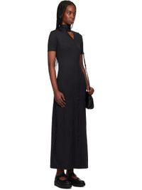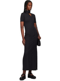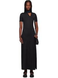 Stretch recycled polyester jersey maxi dress. · Press-stud fastening and stripes at mock neck · Offset V-neck · Darts at chest · Central seam at front and back · Vented hem Supplier color: Black 83% recycled polyester, 17% elastane. Made in Viet Nam 251138F055000