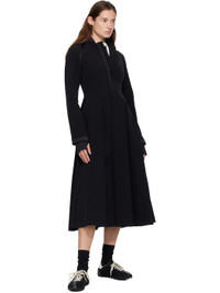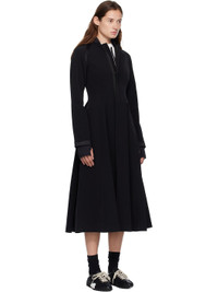 Stretch nylon-blend canvas midi dress. · Padded satin stand collar · Zip closure · Princess seams at waist · Zip pockets at waist · Satin trim at shoulders and cuffs · Vented side seams · Unlined Supplier color: Black 77% nylon, 16% lyocell, 7% elastane. Made in Viet Nam 252138F054000