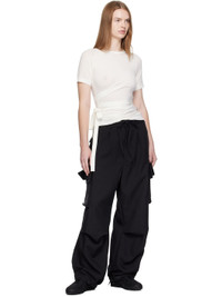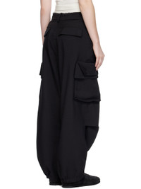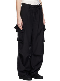 Recycled polyester twill cargo pants. · Drawstring and belt loops at waistband · Four-pocket styling · Zip fly · Pleats at front · Darts at knees · Adjustable press-stud strap at cuffs · Flap and patch pockets at outseams · Logo bonded at pocket Supplier color: Black 100% recycled polyester. Made in Viet Nam 252138F087001