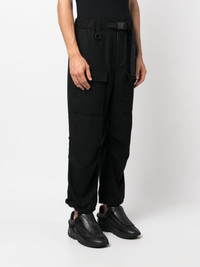 cropped cargo trousers Highlights - Black - Elasticated waistband - Concealed front fastening - Belted waist - Two side inset pockets - Two front cargo pockets - Two rear welt pockets - Full lining - Cropped - When buying this unisex item, keep in mind that it is graded in standard men's sizing. Imported Composition Outer: Recycled Polyester 56%, Wool 41%, Polyamide 2%, Viscose 1% Lining: Cotton 100%, Recycled Polyester 100% SIZE & FIT Model measurements Height 6 ft 1 in(1.86 m) Bust/Chest 37.4 in(95 cm) Hips 36.22 in(92 cm) Waist 29.52 in(75 cm) Washing instructions Dry Clean Only
