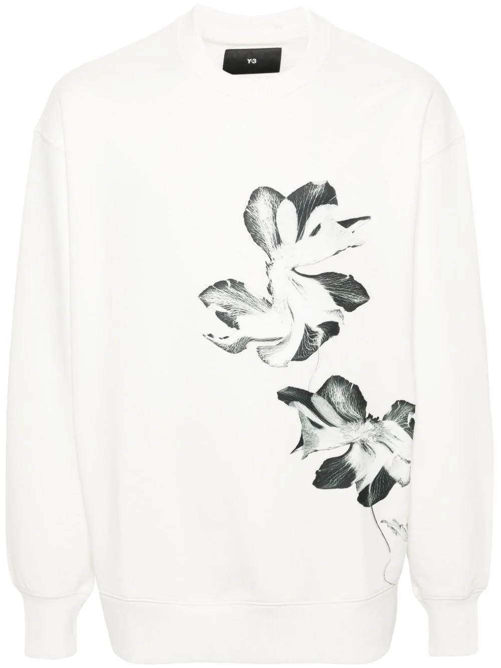 Y-3 Graphic sweatshirt Highlights - White - Crew neck - Long sleeves - Floral print - Ribbed trim - When buying this unisex item, keep in mind that it is graded in standard men's sizing. Imported Composition Cotton 80%, Recycled Polyester 20% SIZE & FIT Model measurements Height 5 ft 11 in(1.8 m) Bust/Chest 35.03 in(89 cm) Hips 35.03 in(89 cm) Waist 23.62 in(60 cm)
