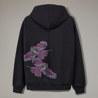 A graphic hoodie from Y-3. Inspired by nature, the Y-3 Graphic Hoodie comes alive in ultraviolet color. It's made in ultra-soft cotton-blend French terry with classic details including a drawstring hood and ribbed cuffs. A graphic of a lilac-breasted roller cascades across the back, interpreted in x-ray vision. Details - Loose fit - Drawcord-adjustable hood - 80% cotton, 20% polyester (recycled) - Side pockets - Drop shoulders - Ribbed cuffs and hem - Y-3 logo - Imported - Product code: IX0403 - Product color: Black