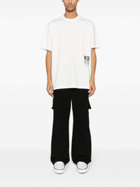 ivory white cotton stretch-jersey crew neck short sleeves logo print to the front straight hem When buying this unisex item, keep in mind that it is graded in standard men's sizing. Size & Fit Model Measurements: Height: 1.78 m Bust/Chest: 82.0 cm Hips: 90.0 cm Waist: 63.0 cm Model wears size L Fabric and Care Designer Style ID: IZ3123 Designer Colour: OFF WHITE Composition: Cotton 100% Washing instructions: Machine Wash Made in Thailand