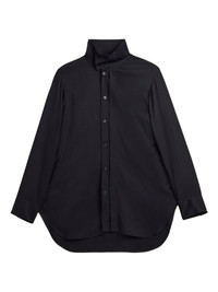 high-neck curved-hem shirt Highlights - Black - Stand collar - Curved hem - Button fastening - Long sleeves - Welt pockets Imported Composition Rayon 100% Washing instructions Read Manufacturer Guidelines