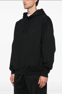 cod. KA3112BLACK Cotton blend hoodie with tone-on-tone front logo print, side pockets, long cuffed sleeves. Color: Black Size & Fit: True to size fit Composition: 80% cotton, 20% polyester Made in: Pakistan