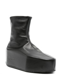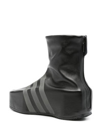 black calf leather grained texture rear zip fastening high wedge heel ankle-length signature 3-Stripes logo round toe branded insole full lining platform sole flat rubber sole We've partnered with Good On You — an independent agency that rates how brands perform in relation to their impact on the planet, people and animals, with a multi-criteria rating simplified to a five points scale. In order to be awarded our conscious label, larger brands need to score a minimum of four out of five ('Good'), while smaller brands must score at least three out of five ('It's A Start'). This item comes from a brand rated three out of five ('It's A Start') by Good on You at the time it was added on FARFETCH. Please note, this is a brand-level rating and does not guarantee that this product is made with conscious materials. Learn more about what makes a product Conscious on our Conscious Criteria page Size & Fit Model Measurements: Bust: 0cm Height: 0cm Hips: 0cm Waist: 0cm CIRCUMFERENCE: 24cm HEEL: 7cm HEIGHT: 13cm Sole height: 4.5cm Fabric and Care Designer Style ID: IF2034 Designer Colour: BLACK/CINDER/BLACK Composition: Sole: Rubber 100%; Outer: Calf leather 100%; Lining: Calf leather 100%, Fabric 100%