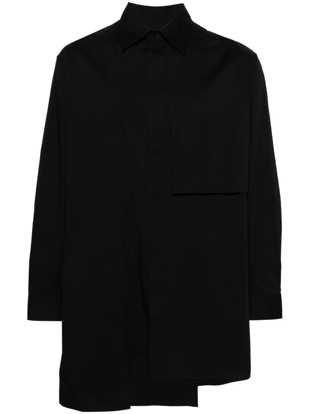 layered poplin shirt Highlights - Black - Cotton blend - Poplin texture - Layered panel detailing - Applique logo - Straight-point collar - Concealed front button fastening - Drop shoulder - Long sleeves with buttoned cuffs - Zip-fastening chest pocket - High-low long length hem - When buying this unisex item, keep in mind that it is graded in standard men's sizing. Imported Composition Cotton 73%, Polyamide 23%, Elastane 4% SIZE & FIT Model measurements Height 5 ft 10 in(1.78 m) Bust/Chest 33.07 in(84 cm) Hips 36.61 in(93 cm) Waist 24.8 in(63 cm) FittingInformation This unisex piece is designed for a loose fit whether you usually select women's or men's sizes Made from a midweight stretch fabric, this piece offers elasticity and flexibility when worn Washing instructions Machine Wash
