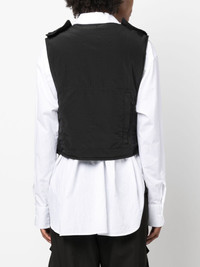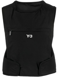 logo-embroidered vest bag Collaboration brand Y-3 presents the vest bag, a design combining 'function and fashion, guided by a utilitarian aesthetic'. Crafted from recycled nylon, it boasts front and rear panels with hook-and-loop straps at the shoulders and sides, allowing it to be closed and adjusted accordingly. It features two zip-fastening pockets, in one of which the packable hood can be stored. Highlights - Black - Recycled nylon - Embroidered logo to the front - Concealed hood - Round neck - Touch-strap fastening - Sleeveless - Front zip-fastening pocket - Rear zip-fastening pocket - Cropped - Straight hem Imported Composition Outer: Recycled Polyamide 100% Lining: Recycled Polyester 100% SIZE & FIT Model measurements Height 5 ft 11 in(1.8 m) Bust/Chest 31.49 in(80 cm) Hips 35.82 in(91 cm) Waist 24.8 in(63 cm) Measurement BUST 33.46 in(85 cm) Shoulder Width 3.93 in(10 cm) WAIST 33.46 in(85 cm) FittingInformation Designed for a relaxed fit, this piece allows for comfort and movement when worn The adjustable tabs allow for fitted preferences Made from a midweight non-stretch fabric This piece is only produced in one size