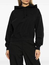 logo-print hoodie Highlights - Black - Slouchy hood - Long sleeves - Straight hem Imported Composition Cotton 80%, Polyester 20%