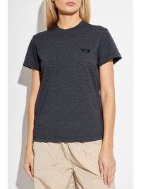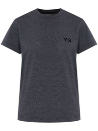logo-print T-shirt Highlights - Black - Jersey texture - Melange effect - Crew neck - Short sleeves - Logo print at the chest - Straight hem Imported Composition Polyester 77%, Wool 23%