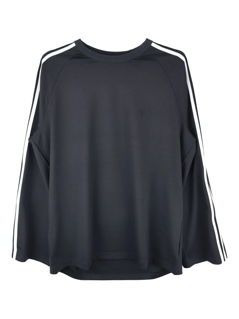 three-stripe long-sleeve t-shirt Highlights - Black - Long sleeves - Three stripes - Raglan sleeves - Round neck - Straight hem Imported Composition Lyocell 63%, Wool Blend 16%, Nylon 16%, Spandex/Elastane 5% Washing instructions Read Manufacturer Guidelines