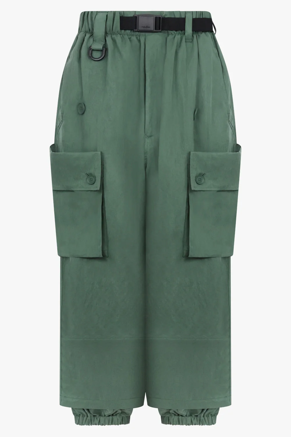 LOOSE FIT CUFFED CARGO PANT WITH OVERSIZED POCKETS | GREEN