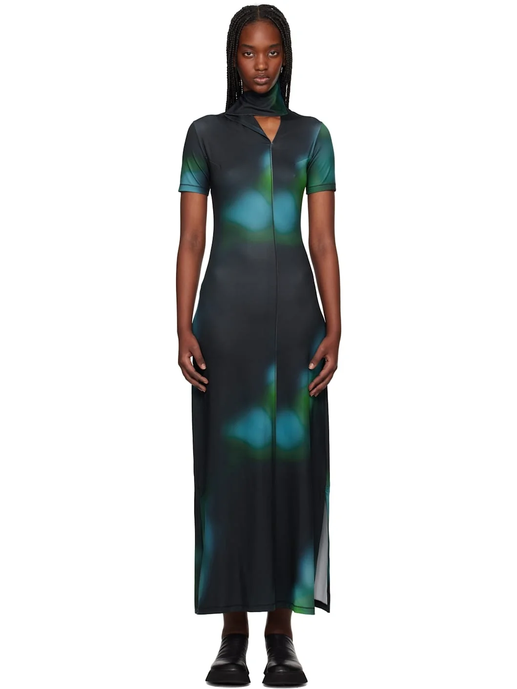 Stretch recycled polyester mesh maxi dress. Graphics printed throughout. · Moisture-wicking AEROREADY technology · Press-stud fastening at mock neck · Offset V-neck · Darts at chest · Central seam at front and back · Vented hem Supplier color: Multicolor 83% recycled polyester, 17% elastane. Made in Viet Nam 251138F055001