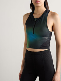 adidas Originals' ongoing partnership with Y-3 consistently delivers performance-focused designs with a strong sense of style. Cut for a close fit, this tank is made from stretch fabric blended with recycled materials and has a galaxy-inspired motif. Adjust the zip-fastening for ventilation. Size & Fit - Fits true to size, take your normal size - Cut for a slim fit - Cropped length - Lightweight, stretchy fabric - Model is 180cm/ 5’11” and is wearing a size XSmall Model measurements: - Bust: 79cm/ 31” - Waist: 61cm/ 24” - Hip: 89cm/ 35” Details & Care - Multicolored stretch recycled-polyamide - Zip fastening along front - 84% recycled polyamide, 16% elastane; lining: 77% recycled polyamide, 23% elastane - Machine wash