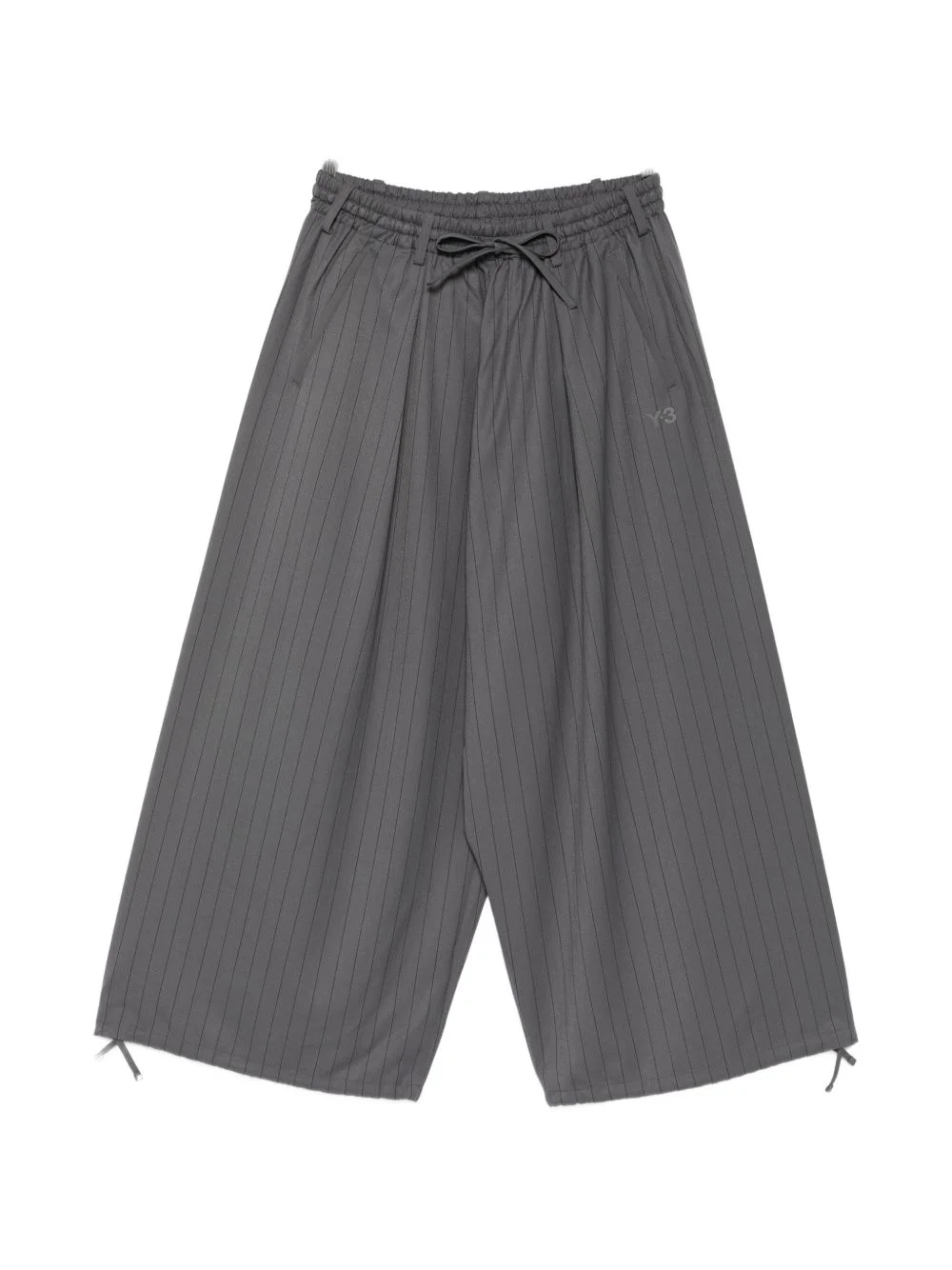 pinstripe drawstring trousers Highlights - Granite grey - Pinstripe pattern - Drawstring waist - Seam pockets - Wide leg - Tie detail Imported Composition Polyester 65%, Wool 30%, Elastane 5% Washing instructions Read Manufacturer Guidelines