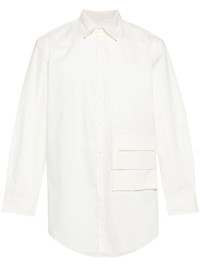 pocket-detailed poplin shirt Highlights - Off-white - Cotton blend - Poplin texture - Classic collar - Front button fastening - Drop shoulder - Long sleeves - Buttoned cuffs - Front patch pocket - Curved hem - High-low hem - When buying this unisex item, keep in mind that it is graded in standard men's sizing. Imported Composition Cotton 59%, Polyamide 33%, Spandex/Elastane 8% SIZE & FIT Model measurements Height 6 ft 2 in(1.89 m) Bust/Chest 39.76 in(101 cm) Hips 37.4 in(95 cm) Waist 29.92 in(76 cm) FittingInformation This unisex piece is designed for a loose fit whether you usually select women's or men's sizes Made from a midweight stretch fabric, this piece offers elasticity and flexibility when worn This piece fits true to size – take your usual size