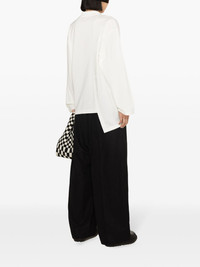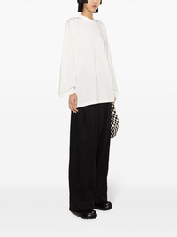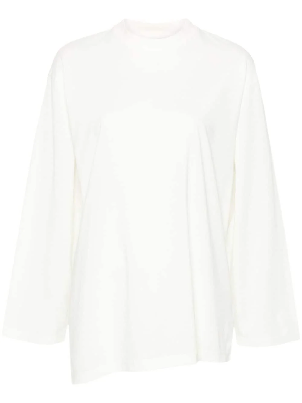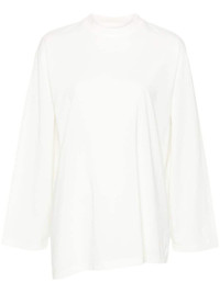 Premium asymmetric T-shirt Highlights - Off-white - Cotton blend - Lightweight jersey - Ribbed trim - Mock neck - Long sleeves - Rear slit - Asymmetric hem Imported Composition Cotton 55%, Polyester 45% SIZE & FIT Model measurements Height 5 ft 10 in(1.78 m) Bust/Chest 29.92 in(76 cm) Hips 34.64 in(88 cm) Waist 23.62 in(60 cm) FittingInformation Designed for an oversized fit, offering additional room throughout Made from a midweight non-stretch fabric, this piece offers minimal elasticity when worn This piece fits true to size – take your usual size