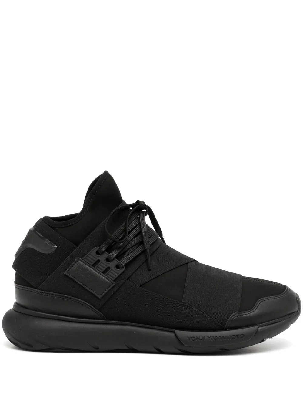 Qasa High 'Triple Black' sneakers The Y-3 Qasa High 'Triple Black' sneakers celebrate 20 years of partnership between adidas and Yohji Yamamoto. This model features a futuristic design in a monochromatic hue that is defined by a bootie-like neoprene upper. A rotund tubular one-piece sole units completes the look. Highlights - Black - Round toe - Front lace-up fastening - Branded insole - Rubber sole Imported Composition Inner: Calf Leather 100% Outer: other fibers 100% Sole: Rubber 100% SIZE & FIT Measurement HEEL 1.57 in(4 cm) Sole height 0.78 in(2 cm)