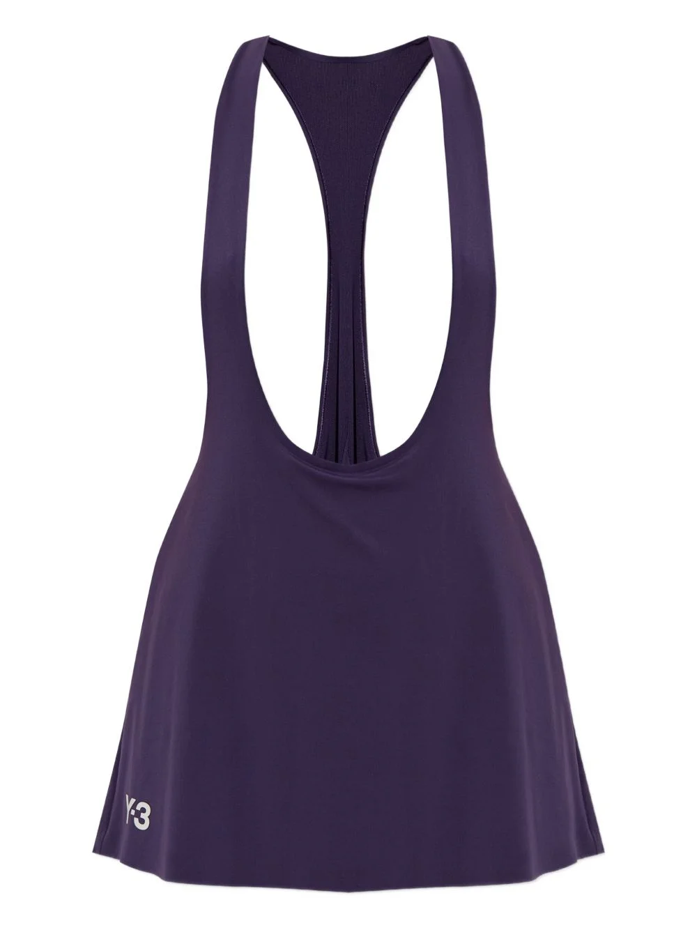 racer-back pleated mini dress Highlights - Dark purple - Racer back - Pleated skirt - Sleeveless - Round neck - Logo detail - Attached shorts Imported Composition Recycled Polyester 85%, Spandex/Elastane 15% Washing instructions Read Manufacturer Guidelines
