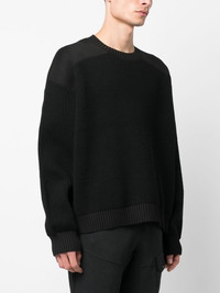 ribbed-knit panelled jumper Highlights - Black - Wool blend - Ribbed knit - Panelled design - Round neck - Long sleeves - Ribbed cuffs and hem - Straight hem - When buying this unisex item, keep in mind that it is graded in standard men's sizing. Imported Composition Wool 86%, Polypropylene 14% SIZE & FIT Model measurements Height 6 ft 1 in(1.85 m) Bust/Chest 35.82 in(91 cm) Hips 37.79 in(96 cm) Waist 29.13 in(74 cm) Measurement CHEST 53.54 in(136 cm) SLEEVE LENGTH 22.44 in(57 cm) Shoulder Width 24.01 in(61 cm) LENGTH 24.01 in(61 cm) FittingInformation This piece fits true to size. We recommend you get your regular size Cut for a loose fit Made with a mid-weight fabric Washing instructions Hand Wash