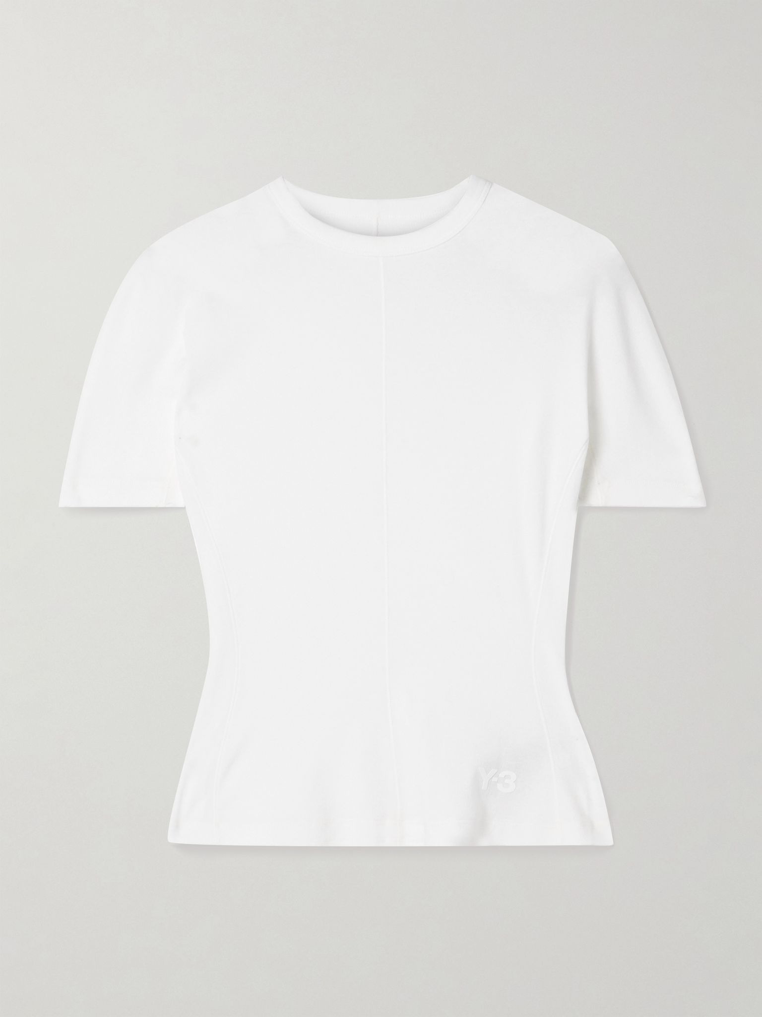 Y-3 combines adidas' sportswear heritage with Yohji Yamamoto's avant-garde style. Perfect for layering, this simple T-shirt is made from organic cotton-jersey with slim, short sleeves and a logo printed by the hem. Size & Fit - Fits true to size, take your normal size - Cut for a slim fit - Mid-weight, stretchy - Model is wearing a size Small Details & Care - White organic cotton-jersey - Slips on - 100% organic cotton - Hand wash