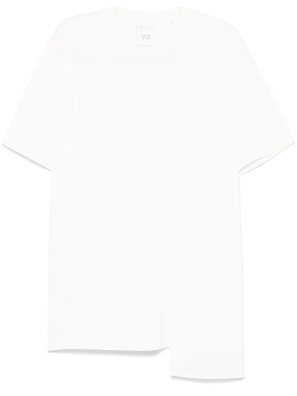 short-sleeve T-shirt Highlights - White - Draped panel detail - Side slits - When buying this unisex item, keep in mind that it is graded in standard men's sizing. Imported Composition Recycled Cotton 55%, Recycled Polyester 45% SIZE & FIT Model measurements Height 5 ft 10 in(1.77 m) Bust/Chest 31.88 in(81 cm) Hips 36.22 in(92 cm) Waist 24.01 in(61 cm) Measurement CHEST 42.51 in(108 cm) SLEEVE LENGTH 10.23 in(26 cm) LENGTH 30.31 in(77 cm) Shoulder Width 18.5 in(47 cm) FittingInformation This unisex piece is designed for a loose fit whether you usually select women's or men's sizes Made from a midweight non-stretch fabric, this piece offers minimal elasticity when worn