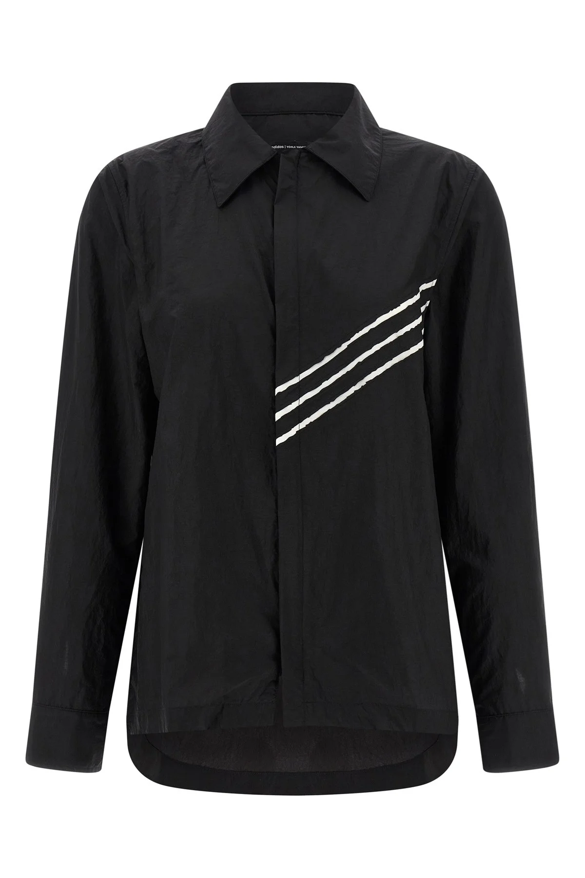 cod. KF1193BLACK 'W RE 3S' overshirt in tech fabric, pointed collar, front closure with hidden zip, front '3 stripes' insert, side splits, asymmetric length. Color: Black Size & Fit: True to size fit Composition: 100% polyamide Made in: Vietnam