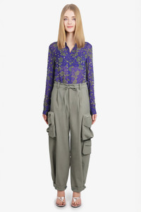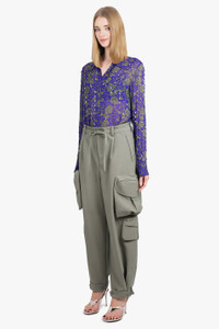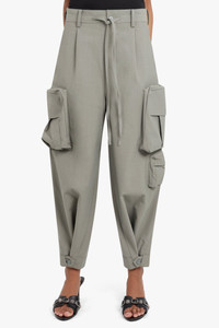 WIDE LEG COTTON CARGO PANTS | STONE GREEN