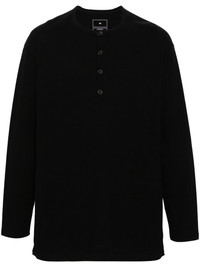 x Adidas crew-neck T-shirt Highlights - Black - Cotton - Crepe texture - Applique logo - Crew neck - Front button placket - Drop shoulder - Long sleeves - Two side welt pockets - Short side slits - High-low hem - When buying this unisex item, keep in mind that it is graded in standard men's sizing. Imported Composition Cotton 100% SIZE & FIT Model measurements Height 5 ft 10 in(1.78 m) Bust/Chest 33.07 in(84 cm) Hips 36.61 in(93 cm) Waist 24.8 in(63 cm) FittingInformation This piece is unisex – if you usually select men's sizing expect a loose fit throughout; if you usually select women's sizes, expect an oversized fit Made from a midweight non-stretch fabric, this piece offers minimal elasticity when worn This piece fits true to size – take your usual size