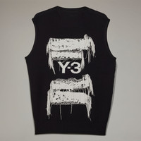 A loose-fit vest from Y-3 with a knit-in logo graphic. Designed to reference the unfinished and raw design elements of Y-3, this Y-3 Graphic Knit Vest is built to fit loose for a fashion-forward look. The knit-in engineered Y-3 logo and graphic feature loose threads on the sides for a totally unique finish. Details - Loose fit - Ribbed collar - 100% polyester (recycled) - Graphic with loose, hanging threads - Knit-in engineered Y-3 logo - Imported - Product code: JN4874 - Product color: Black