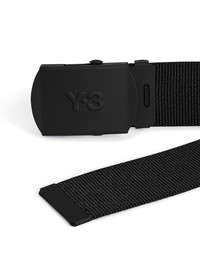 Y-3 Classic Logo Belt in Black from Y-3 Highlights - black - durable jacquard webbing - minimalist metal buckle - embossed Y-3 logo on buckle - versatile everyday accessory The Y-3 Classic Logo Belt combines functional design with signature Y-3 style. Made from sturdy jacquard webbing, it ensures durability for daily wear, while the minimalist metal buckle, embossed with the Y-3 logo, adds a refined designer touch. A versatile accessory, this belt effortlessly elevates both casual and polished looks. Made in China Designer ID: KA2308 Colour ID: Black Materials 100% Polyester