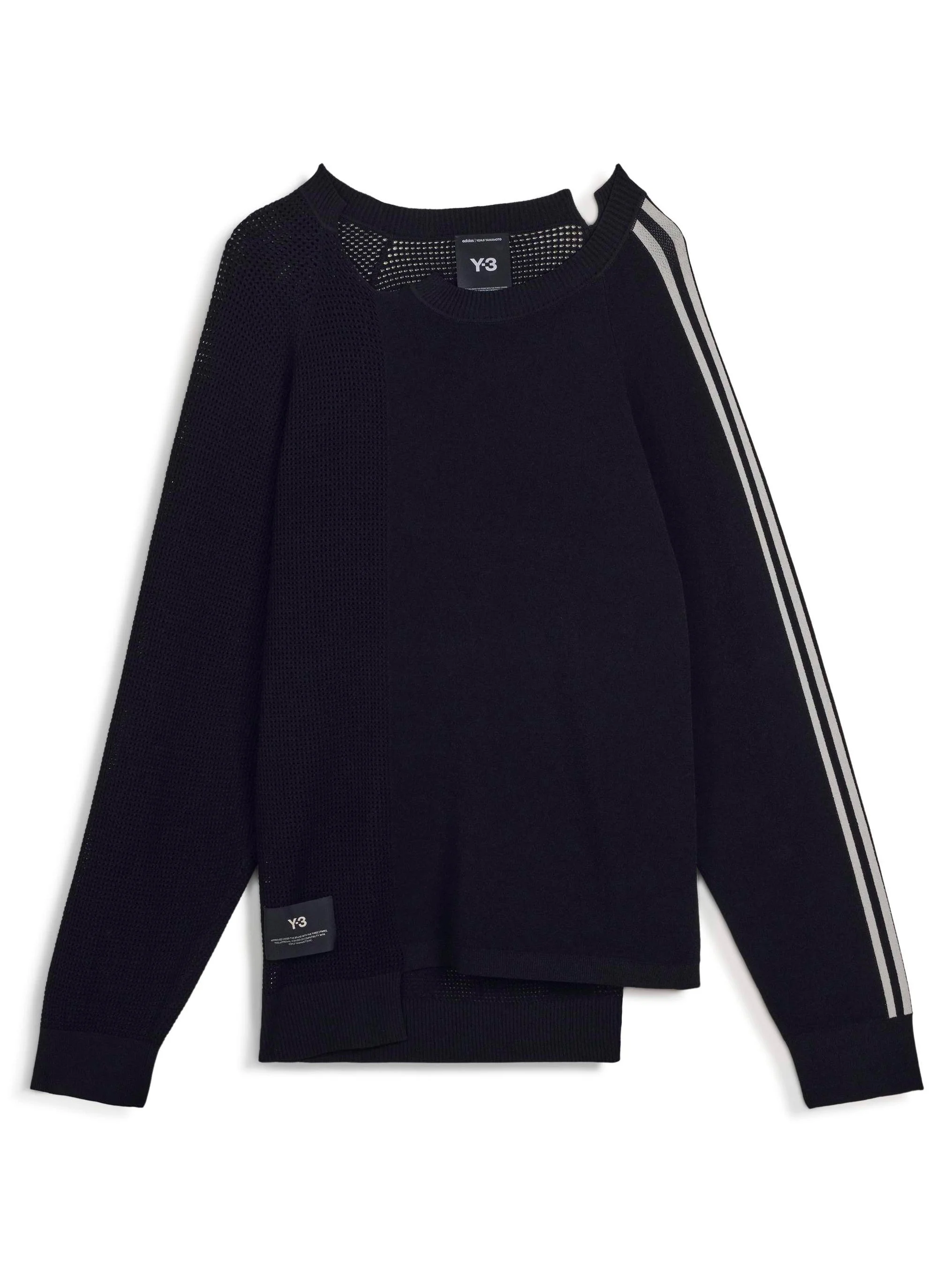 Y-3 Logo Knit Sweatshirt in Black from Y-3 Highlights - black - knit construction - loose, relaxed fit - long sleeves - versatile for layering or standalone wear - Y-3 logo detailing The Y-3 Logo Knit Sweatshirt fuses adidas’ sportswear heritage with Yohji Yamamoto’s signature avant-garde style. Crafted from soft knit fabric, it offers a relaxed, loose fit that ensures comfort and ease of movement. Perfect for layering or wearing on its own, this sweatshirt embodies the seamless blend of high fashion and streetwear. With Y-3’s distinctive design language, it makes a bold, stylish statement while keeping everyday wear effortlessly chic. Made in China Designer ID: KR2395 Colour ID: Black Materials 83% RAYON / 17% RECYCLED POLYESTER