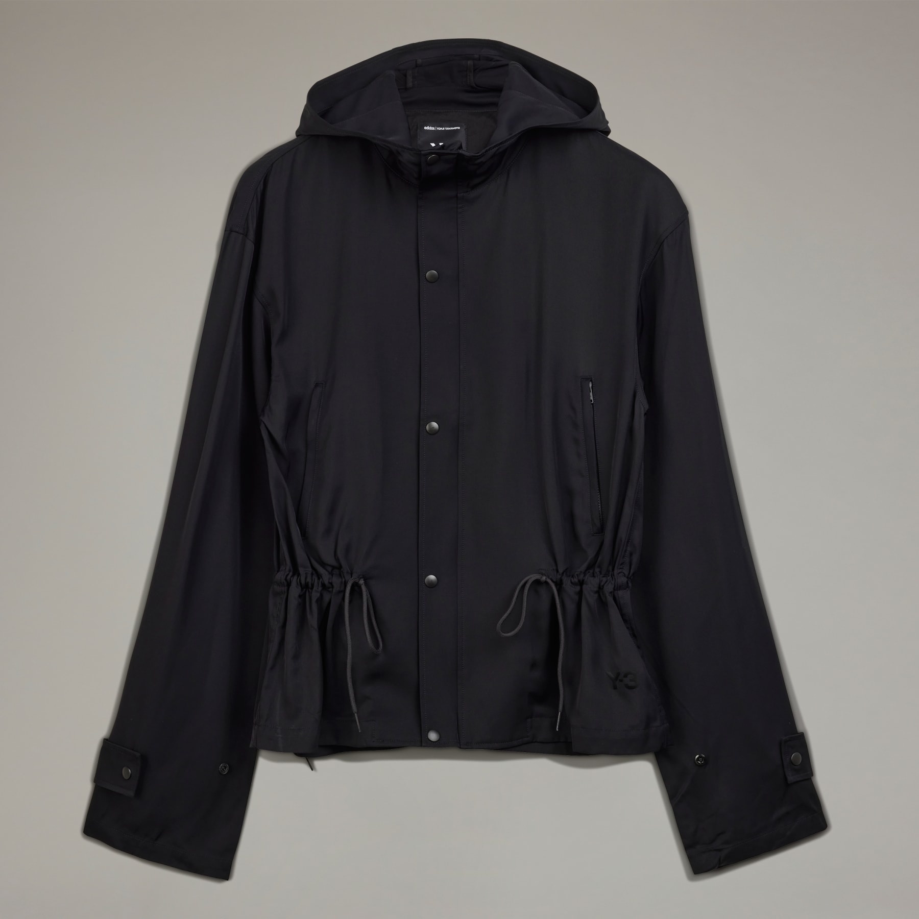 An elegant hooded top from Y-3. In the spirit of Y-3, the Y-3 Rayon Twill Hooded Top views sportswear through a fashion lens. It's fabricated in rayon twill that has a soft, silky feel and elegant drape. The front zipper is hidden beneath a snap-closure front and a tie cord at the waist can be cinched to alter the shape. Details - Loose fit - Full zip with snap-button closure - 100% viscose - Welt pockets - Hooded - Drawcord-adjustable waist - Y-3 logo - Imported - Product code: JD1760 - Product color: Black