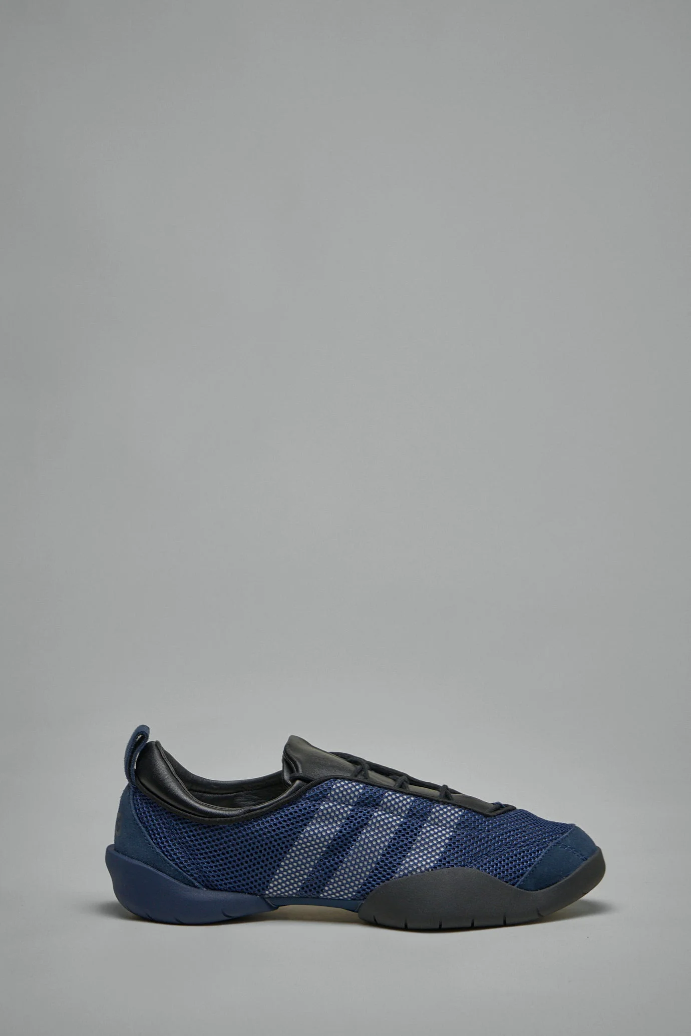 - round toe - side stripes detailing - lace-up closure Materials: 100% fabric upper, 100% rubber sole Color: darkblue, conavy SKU: 150102 Brand style: JQ2427