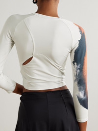 + Y-3 cropped cutout appliquéd printed recycled stretch-jersey tennis top White