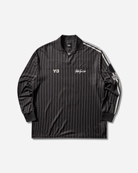 adidas Y-3 Zinedine Zidane Football Longsleeve Jersey Black The Y-3 Zinedine Zidane Football Long Sleeve Jersey is a testament to the fusion of Yohji Yamamoto's eye for unconventional fashion with adidas' history in sportswear. Designed for sport style enthusiasts, this t-shirt is suitable for both on and off the pitch. - 100% Recycled Polyester - Loose Fit - Pinstripe Pattern - Ribbed Collar and Cuffs - Graphic Printed at Front and Back - Patches at Sleeve - Style Code: KS7574