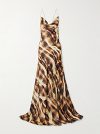Asymmetric Draped Printed Satin Maxi Dress