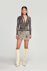 Fitted, long sleeve, stretch jersey bodysuit features three necklines that close via a plethora of hook and eye closures. Style the bodysuit in various ways by adjusting how the necklines fasten together. - Fitted - Long - Hook and eye closures - Made in Portugal MATERIAL 92%VISCOSE 8%ELASTHANNE