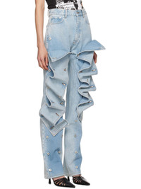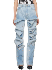 Non-stretch organic cotton denim jeans. Fading throughout. · Belt loops · Five-pocket styling · Zip-fly · Detachable overlays at front for alternate styling · Leather logo patch at back waistband Part of the Evergreen collection. Supplier color: Evergreen ice blue 100% organic cotton. Made in Portugal 242893F069013