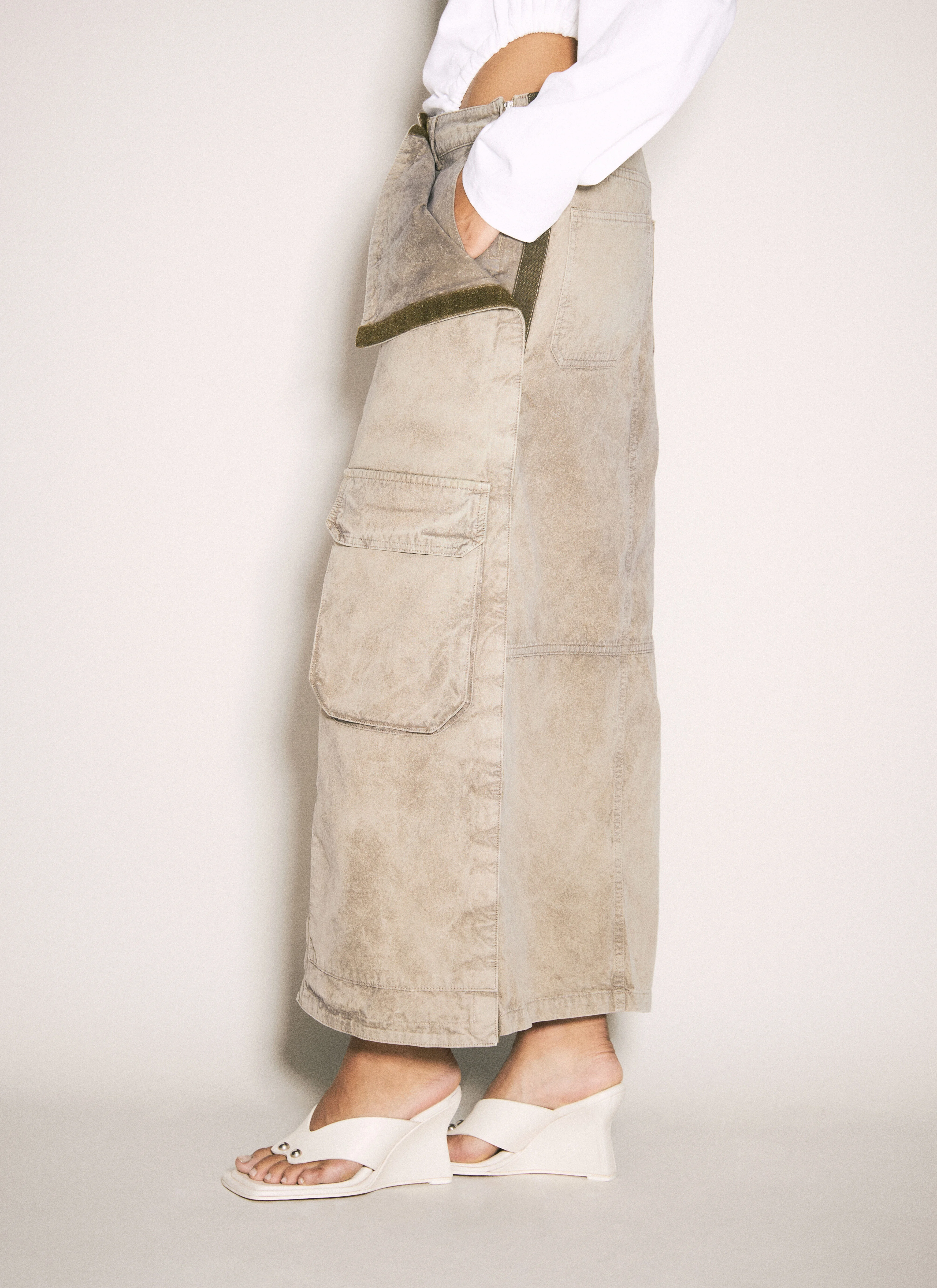 Cargo maxi skirt with touch-fastening front panel. - Mid rise - Front pockets - Adjustable front panels - Rear logo patch - 100% Cotton. Machine wash - Color: Beige - Code: 103SK001 F565