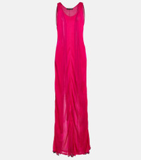 Y/Project's conceptual designs will bring fresh vision to your edit. Made of chiffon that drapes with an ethereal essence, this maxi dress has a round-neck silhouette with a split skirt and a frilled hem. Product Details - Material: 100% viscose - Care instructions: dry clean - Made in Portugal - Designer color name: Fucsia - Item number: P00800533 Size & Fit - True to size - Cinched waist - Mid-weight material - The model seen in the picture is 178cm-5'10" and wearing a size FR 36