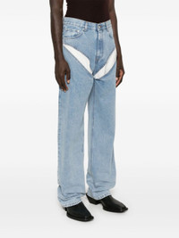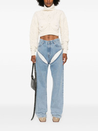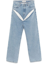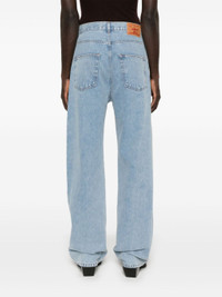 light blue organic cotton denim concealed fly and button fastening classic five pockets cut-out detailing logo patch to the rear high waist straight leg Conscious: This product contains organic cotton where the cultivation and manufacturing process restricts the use of chemicals, eliminates pesticides or artificial fertilisers and incorporates methods that respect biodiversity, improve soil quality, and reduce water consumption. Learn more about what makes a product Conscious on our Conscious Criteria page Size & Fit Model Measurements: Bust: 0cm Height: 0cm Hips: 0cm Waist: 0cm Fabric and Care Designer Style ID: 207PA006D22 Designer Colour: EVERGREEN ICE BLUE Composition: Organic cotton 100% Washing instructions: Read Manufacturer Guidelines Made in Portugal