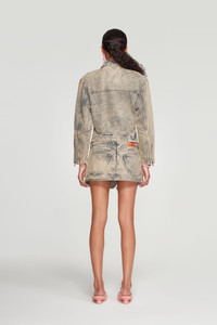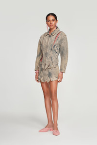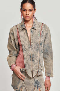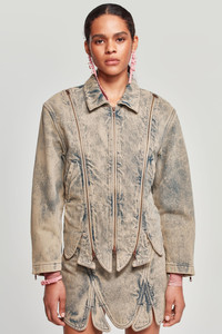 Cropped tudor inspired denim jacket with multiple zippers running vertically along the torso. Style the jacket in numerous ways by adjusting the zippers to reveal as much or as little as desired. - Made in Portugal - Cropped jacket - Multiple zippers MATERIAL 100% COTTON