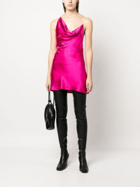draped silk minidress from Y / PROJECT featuring fuchsia pink, sleeveless and draped design. Size & Fit Model Measurements: Height: 1.8 m Bust/Chest: 82.0 cm Hips: 93.0 cm Waist: 63.0 cm Model wears size 36 Fabric and Care Designer Style ID: WDRESS105 Designer Colour: FUSCHIA Composition: Polyester 100% Washing instructions: Dry Clean Only Made in Poland