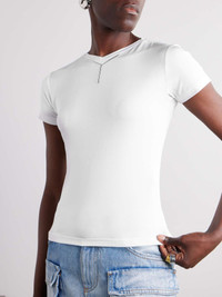 EDITORS'NOTES Paris-based Y/Project is built on the philosophy of individuality and independence. Made from stretch-jersey, this 'T-shirt' has a slim fit and V-neckline embellished with the label's silver-tone 'Y' emblem. Wear yours with distressed denim. SIZE & FIT Model measurements: - Fits true to size, take your normal size - Designed for a slim fit - Lightweight, stretchy fabric - Model is 177cm/ 5'10" and is wearing a size Small - Bust: 79cm/ 31" - Waist: 61cm/ 24" - Hip: 89cm/ 35" DETAILS & CARE - White stretch-jersey - Slips on - 91% viscose, 9% elastane - Hand wash