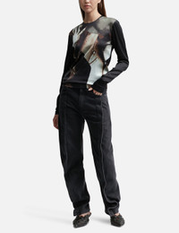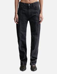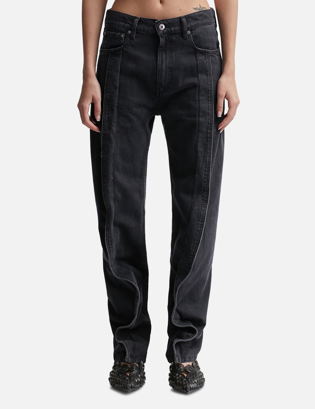 - Y/PROJECT - Evergreen Banana Slim Jeans - Washed denim fabric - Unique banana-shaped silhouette - Ruffled effect at front - 5 pocket style - Slim fit - Color: Evergreen Vintage Black - Country Of Origin: FR - Material: 100% Organic Cotton - See more Jeans and Clothing SIZING - Model wears size 27 - Model measures: Height 175cm, Chest 33”/83.8cm, Waist 23”/58.4cm,Hip 34”/86.4cm
