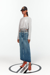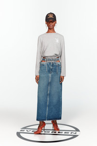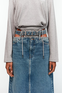 Mid-length, denim skirt with attached 'floating' Y belt at the waist. This piece is a part of our fully sustainable Evergreen collection. - Made in Portugal MATERIAL 100% ORGANIC COTTON