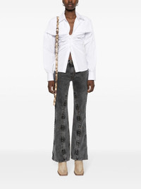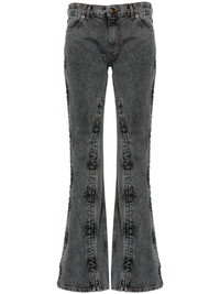 faded bootcut jeans Y/Project is renowned for its irreverent aesthetic, and these black jeans are proof. Made from sturdy organic cotton denim to a flared silhouette, they're fitted with hook and eye fastenings from the hem to the thigh, lending an element of personalisation. Highlights - Black - Faded effect - Organic cotton - Denim - Belt loops at the waist - Classic five pockets - Logo patch to the rear - Hook and eye detailing - Internal logo tag - Bootcut - Front button and zip fastening Imported Composition Organic Cotton 100% SIZE & FIT Model measurements Height 5 ft 11 in(1.8 m) Bust/Chest 32.67 in(83 cm) Hips 36.22 in(92 cm) Waist 24.4 in(62 cm) FittingInformation Designed with a flared hem, these jeans allow for a close fit at the waist with a slim fit over the leg and widening towards the hem Sturdy and hard-wearing, this denim piece offers no stretch This piece fits true to size – take your usual size